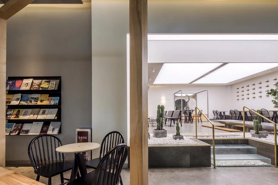 如何运用光将巧妙地将庭院引入,这是设计们必须解决的痛点。融入现代美学手法去除华而不实,以贴近自然的光影效果让尘封的阴霾也能变得阳光,从而打造出一处清雅幽静的绿色空间。吸引一大批崇尚自然,崇尚健康理念的顾客前来品茶、交谈及会议等。
